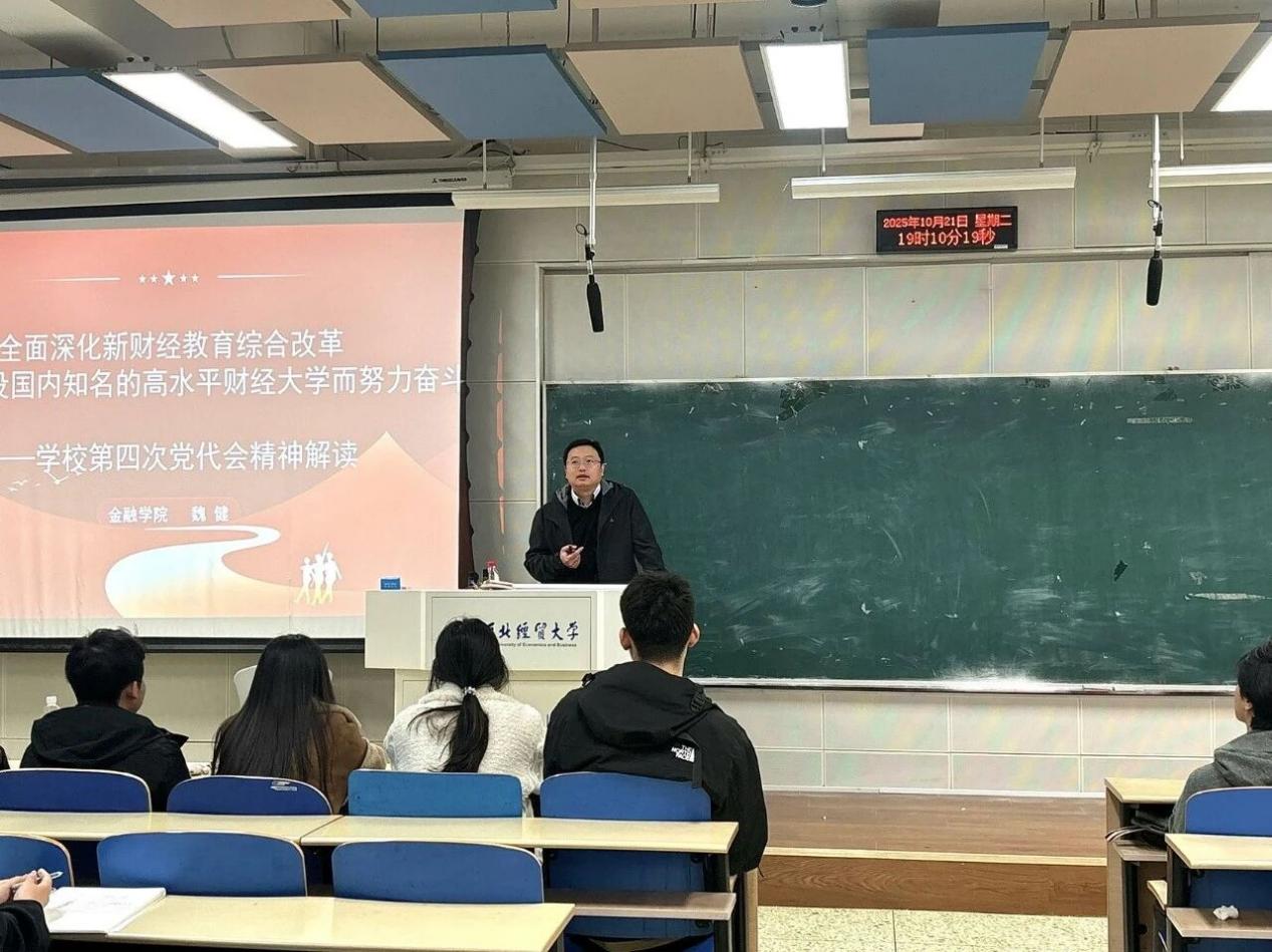 2025年10月21日,河北经贸大学金融学院党委书记魏健讲授了一场主题为“全面深化新财经教育综合改革,为加快建设国内知名的高水平财经大学而努力奋斗”的党课,金融学院100余名入党积极分子参与了此次党课。此次党课旨在深入解读学校第四次党代会精神,探讨如何在新时代背景下推进教育现代化,加快建设国内知名的高水平财经大学。