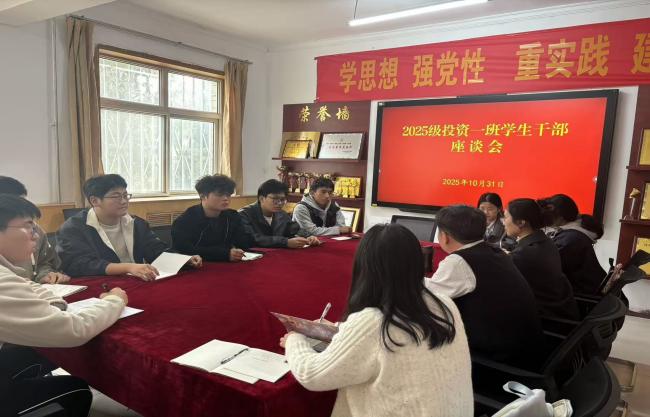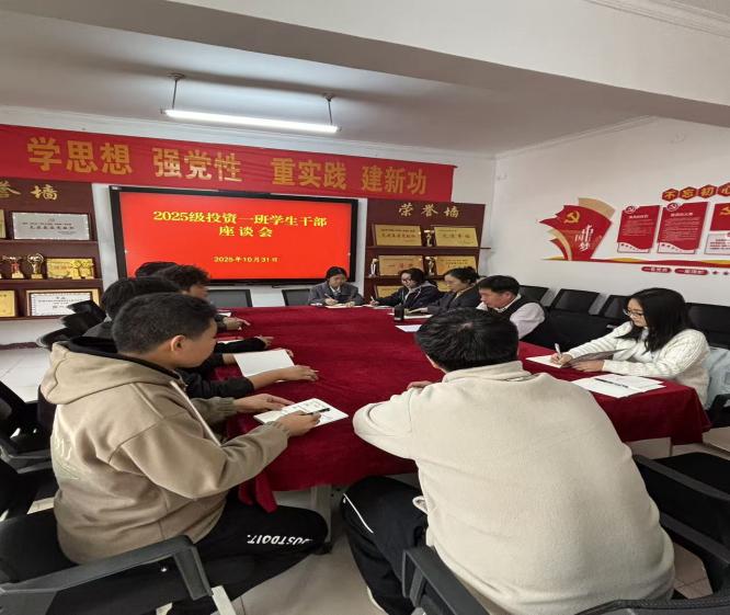10月31日,赵国峰参加金融学院2025级投资一班班委座谈会,与班级辅导员和全体班委围绕学生工作提质、青年成长赋能等内容开展深度交流。