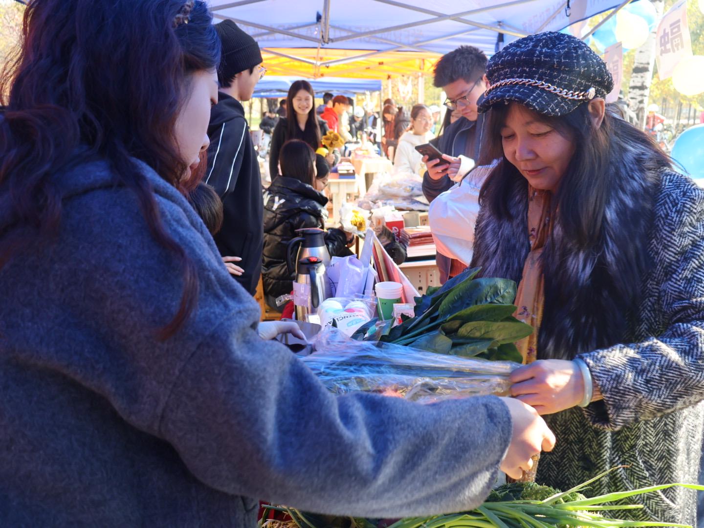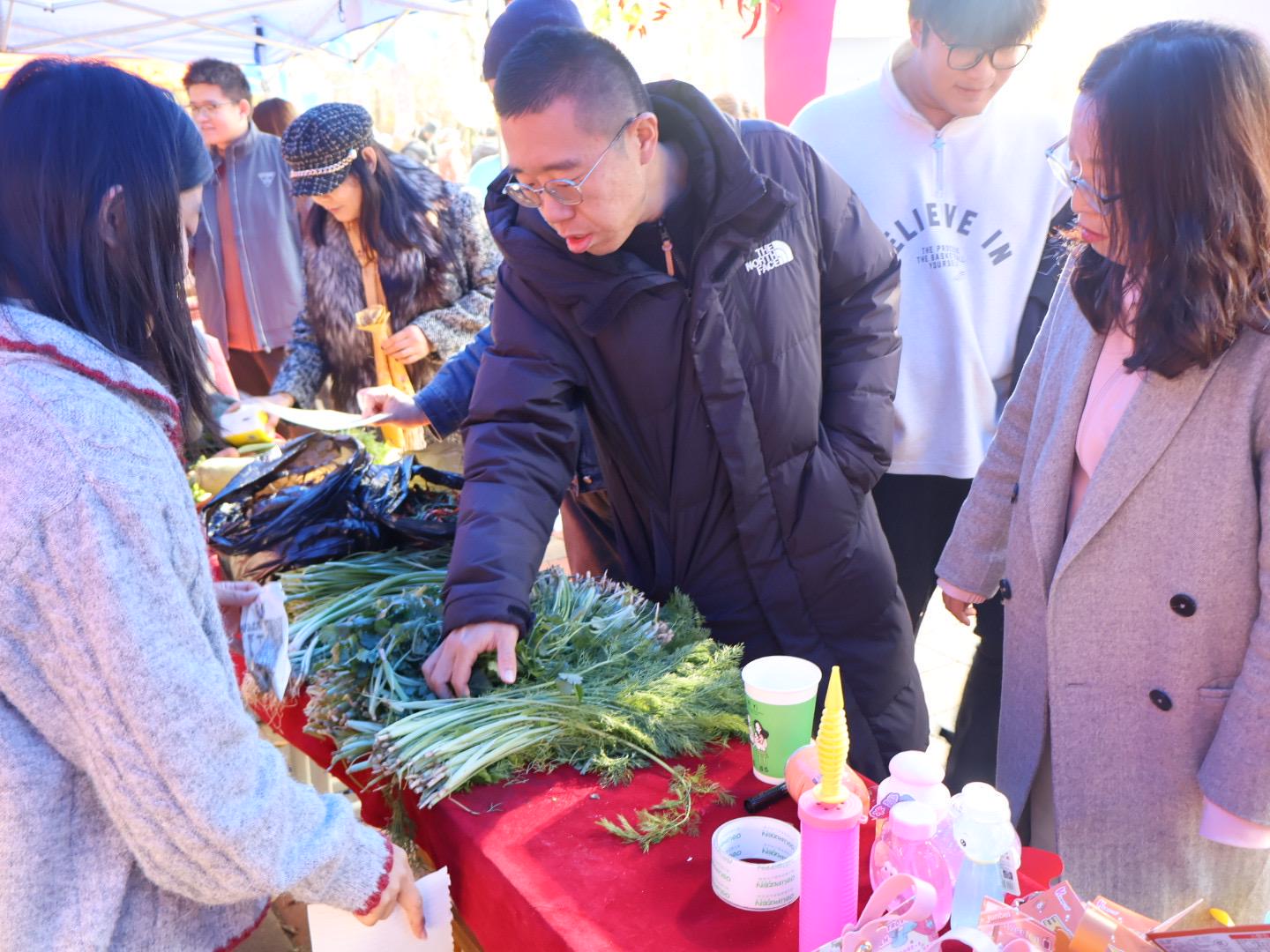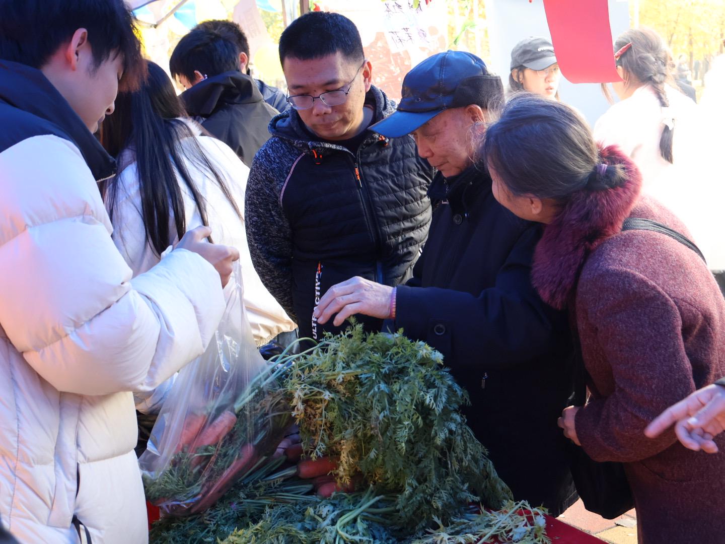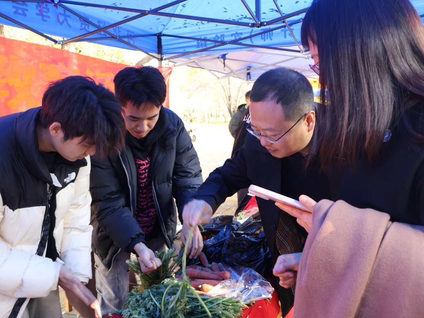 市集上,金穗青年劳动实践教育基地的农产品,均由我院学生全程参与种植、养护、收获,学生们全流程参与实践,亲手策划售卖方案、核算成本收益。这不仅是劳动成果的集中展示,更是一堂沉浸式 “田野课堂”,让学生在汗水中体会劳动的价值,在交易中初识市场逻辑。