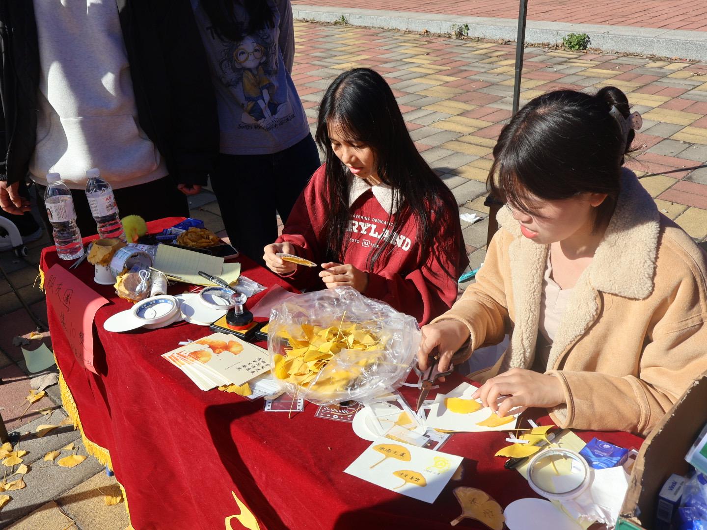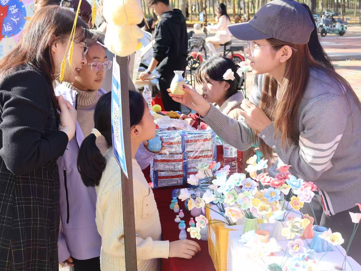围绕银杏节主题打造的金融文创摊位中,学生们亲手制作银杏手工纪念品,陶艺插花,炫彩风车等,将银杏叶元素与金融符号融合,专业特色与节日氛围结合,既有观赏性又具纪念意义。文创作品的设计与制作过程,不仅激发了学生的创新思维,更让学生在劳动中体验生活,实现校园文化传播与劳动育人的双重效果。