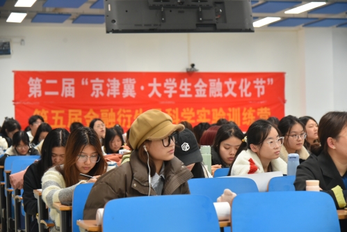 11月1日至2日第二届“京津冀·大学生金融文化节”系列活动之——金融衍生品科学实验训练营在我校成功举办。活动特邀永安期货石家庄分公司总经理王吉元担任培训专家。河北省证券期货业协会副秘书长姚新战、主任祖小鲲,河北经贸大学金融学院副院长窦丽琛出席此次活动来自河北骏业纤维有限公司、建信保险资产管理有限公司、中国银行等单位员工代表,以及我校5个学院10个专业的180余名学生参加本次训练营