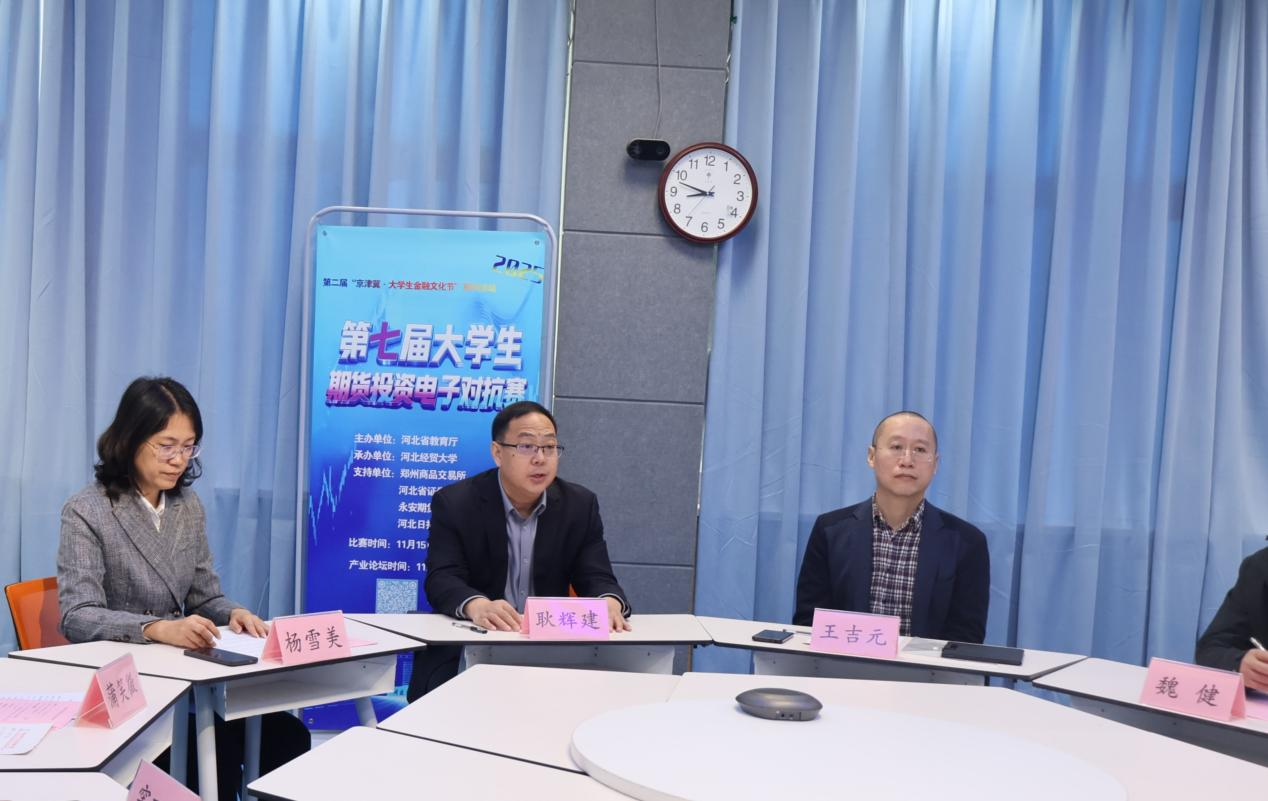 11月15日,作为第二届 “京津冀·大学生金融文化节” 系列活动之一,第七届大学生期货投资电子对抗赛在我校圆满落幕。本次大赛由河北省教育厅主办、我校承办,永安期货股份有限公司、郑州商品交易所、河北省证券期货业协会等单位提供了指导支持。校党委常委、副校长耿辉建出席开幕式并致辞,来自北京物资学院、河北师范大学、永安期货、河北岭石网络科技、浙江物产永利实业、河北省证券期货业协会等单位的高校和业界专家,学校教务处及金融学院相关领导教师,各高校指导教师及参赛选手通过线上线下形式参与活动,我院院长杨雪美主持开幕式。