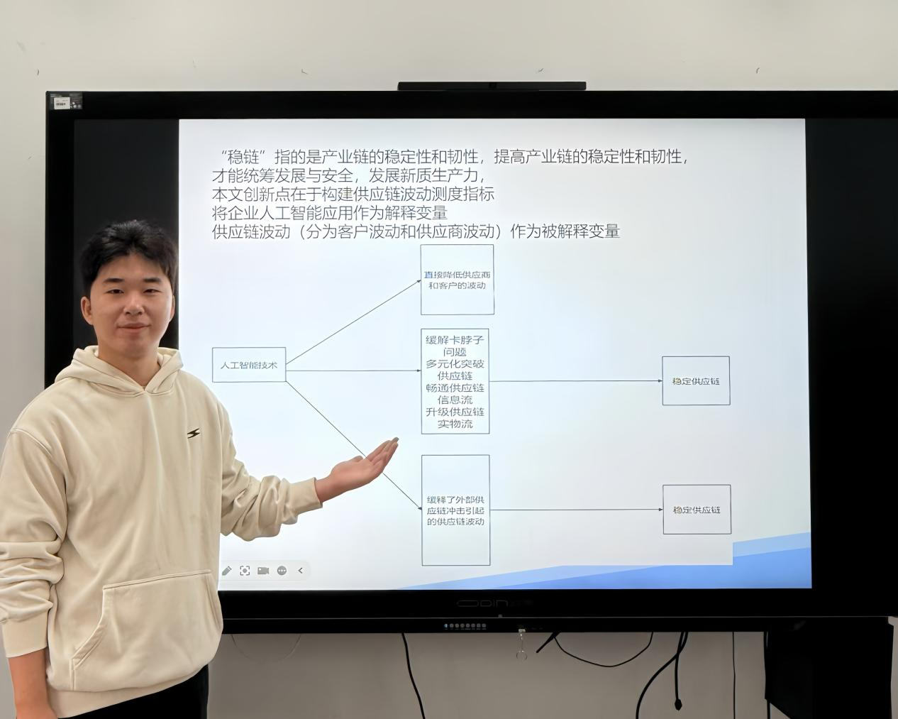 10月17日,金融学院研究生顺利举办第六十二期“融道论坛”学术沙龙活动。主讲人为2025级金融学硕王竞攀同学,围绕主题《人工智能的“稳链”效应——来自供应链波动的经验证据》展开深度分享,学院二十余名研究生参加。